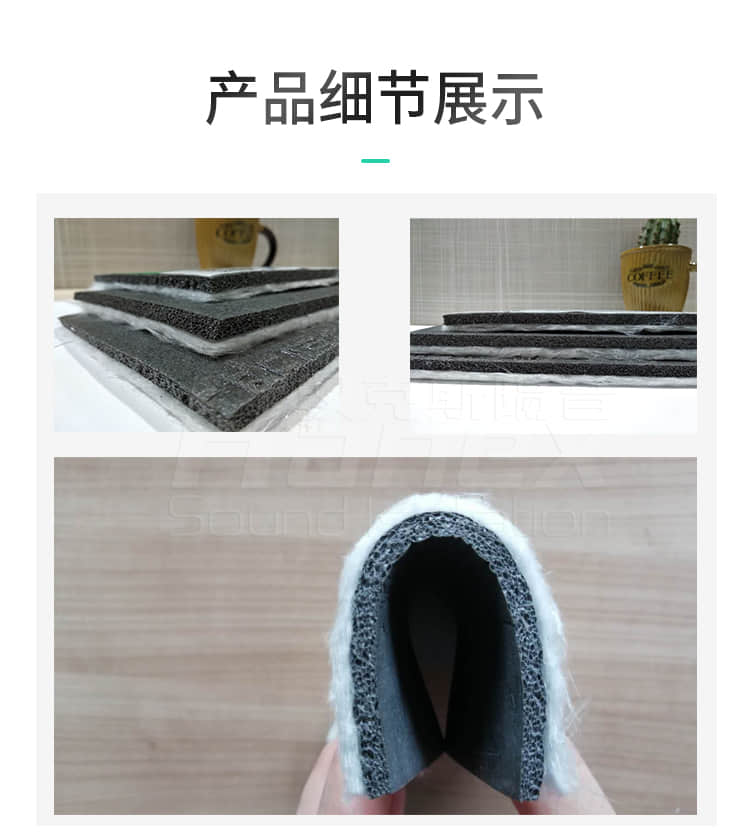 具有隔音好,防水防潮,無毒環保,隔熱保溫,回彈力好,重量輕,使用壽命長等特點,是解決住宅噪音問題的專業隔音產品,是一種新型節能環保材料。